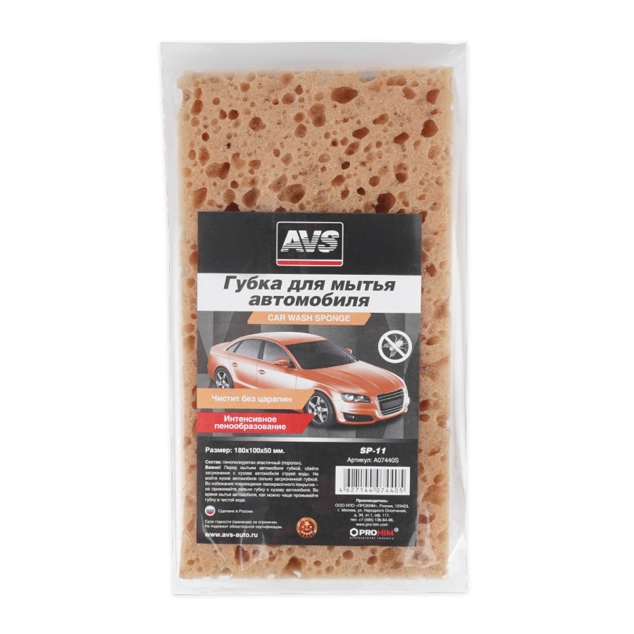 Губка поролоновая (крупнопористая) AVS SP-11 (кирпич) (180x100x50мм)