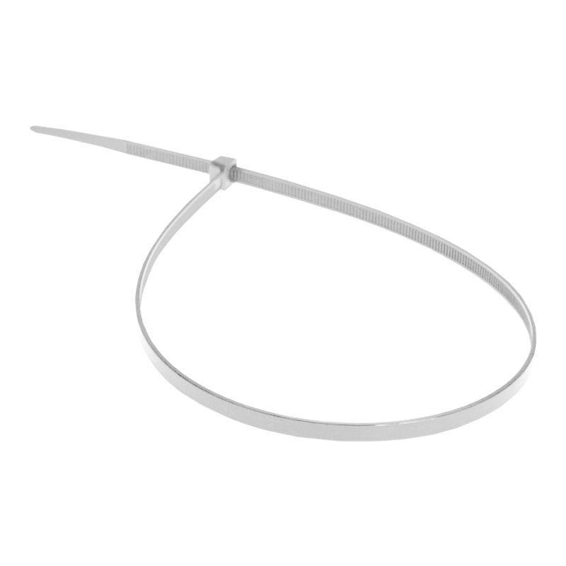 Хомут-стяжка из нейлона для крепления и бандажирования различных кабелей, проводов и других предметов, между собой и к несущей поверхности. Используется для электромонтажных работ, бытовых нужд.