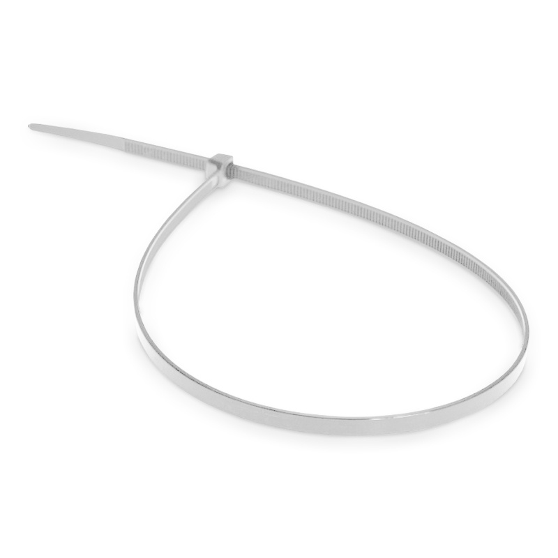 Хомут-стяжка из нейлона для крепления и бандажирования различных кабелей, проводов и других предметов, между собой и к несущей поверхности. Используется для электромонтажных работ, бытовых нужд.