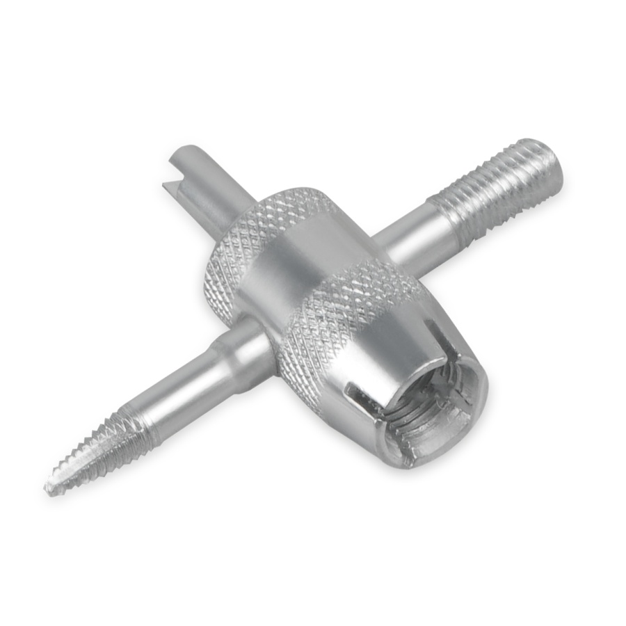 Ключ предназначен для очистки и восстановления внутренней и наружной резьбы колесных вентилей легковых автомобилей. Снабжен ключом для золотника. Ключ изготовлен из качественного материала и обладает высокой износоустойчивостью.