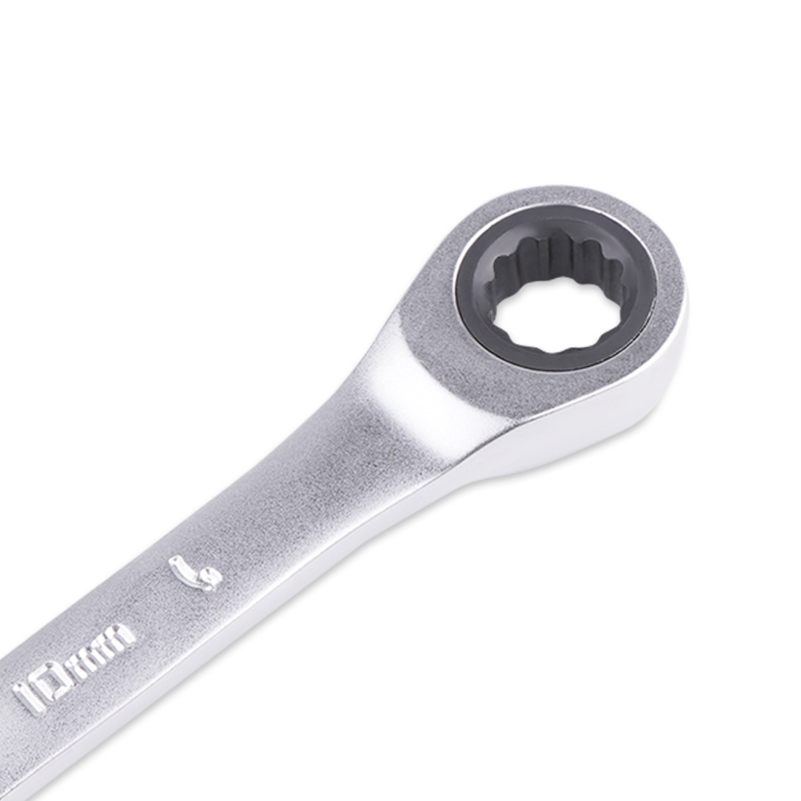 Комбинированный гаечный ключ из хромованадиевой стали с 72-зубцовым храповым механизмом в накидной части. Благодаря наличию трещотки, ключ ускоряет отворачивание и заворачивание крепежа как в обычных условиях, так и в условиях ограниченного пространства.