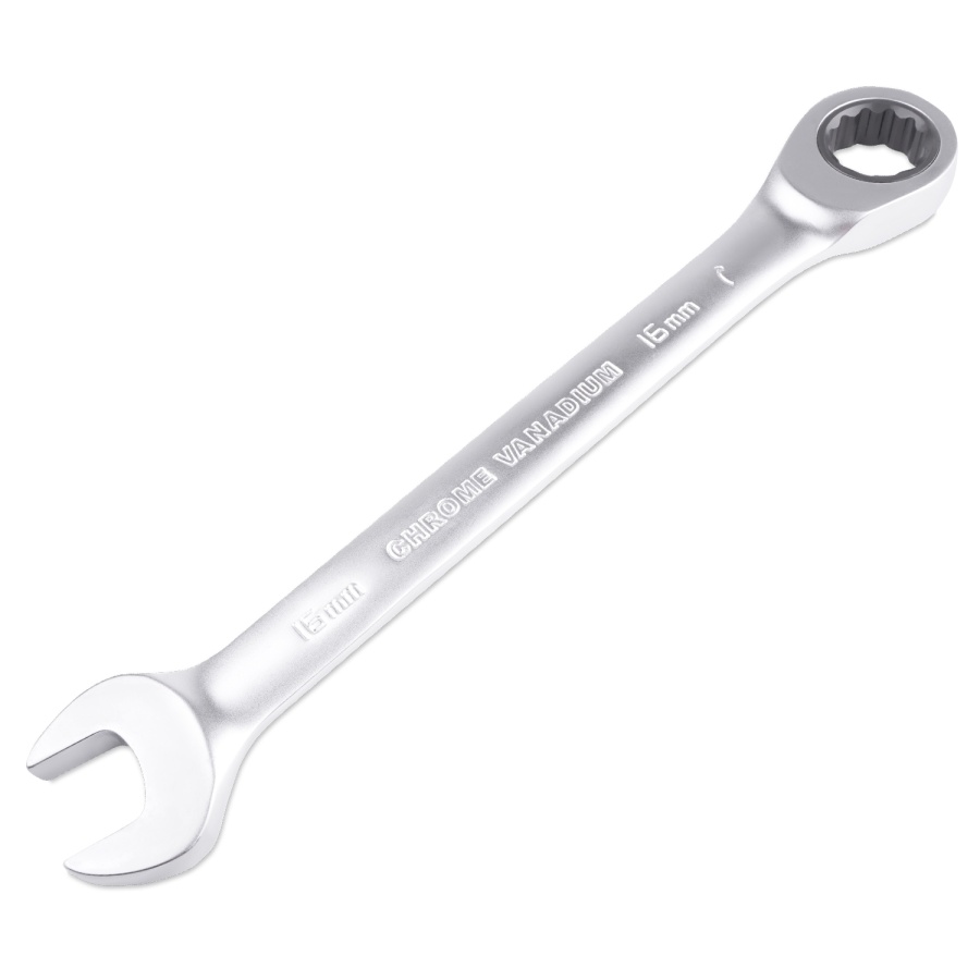 Комбинированный гаечный ключ из хромованадиевой стали с 72-зубцовым храповым механизмом в накидной части. Благодаря наличию трещотки, ключ ускоряет отворачивание и заворачивание крепежа как в обычных условиях, так и в условиях ограниченного пространства.