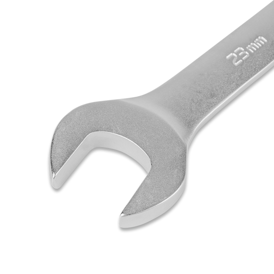 Комбинированный гаечный ключ из хромованадиевой стали с 72-зубцовым храповым механизмом в накидной части. Благодаря наличию трещотки, ключ ускоряет отворачивание и заворачивание крепежа как в обычных условиях, так и в условиях ограниченного пространства.
