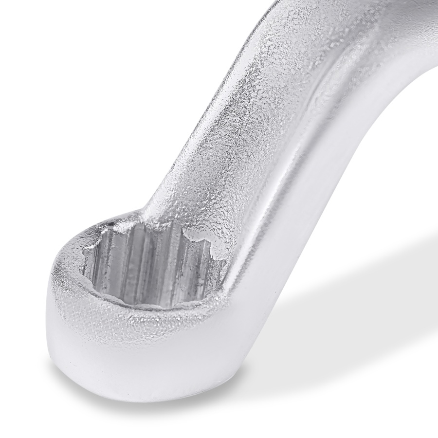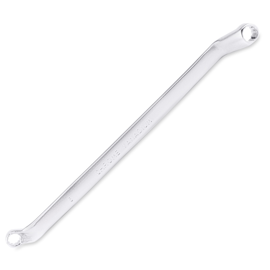 Накидной ключ – это рукоять и зажимная часть, которая охватывает весь периметр гайки. Он более удобен в эксплуатации и надежнее фиксирует крепеж, чем рожковый. Применяется для работ с высоконагруженными резьбовыми соединениями. Изогнутая на 75° коленчатая рабочая часть облегчает доступ в труднодоступные места. Кольцевые ключи имеют 12 граней. 12-тигранный ключ более распространен в использовании (поворот на 30 градусов). Из-за большого пятна контакта вероятность деформации углов сведена к нулю. Ключи изготавливаются из легированной хромованадиевой стали по стандарту DIN 838, в соответствии с ГОСТ 2906-80.