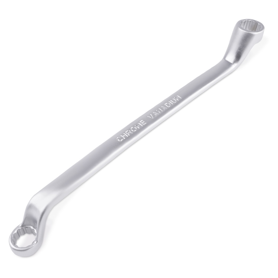 Накидной ключ – это рукоять и зажимная часть, которая охватывает весь периметр гайки. Он более удобен в эксплуатации и надежнее фиксирует крепеж, чем рожковый. Применяется для работ с высоконагруженными резьбовыми соединениями. Изогнутая на 75° коленчатая рабочая часть облегчает доступ в труднодоступные места. Кольцевые ключи имеют 12 граней. 12-тигранный ключ более распространен в использовании (поворот на 30 градусов). Из-за большого пятна контакта вероятность деформации углов сведена к нулю. Ключи изготавливаются из легированной хромованадиевой стали по стандарту DIN 838, в соответствии с ГОСТ 2906-80.