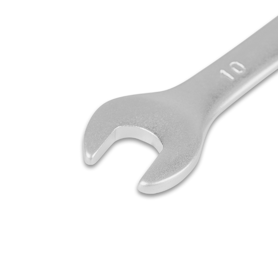 Рожковый гаечный ключ, он же гаечный с открытым зевом – это рукоятка с двумя рабочими краями, рабочая часть которых – U-образная подкова. Незаменимый универсальный инструмент для обслуживания крепежа, доступного лишь, с одной стороны. Крепеж надежно фиксируется в вилке и с помощью рычага происходит давление на откручивание или затягивание резьбового соединения. Инструменты изготавливаются из хромованадиевой стали по стандарту DIN 3110 и соответствуют требованиям ГОСТ 2838-80 и ГОСТ 10112-2001 по размерному ряду.