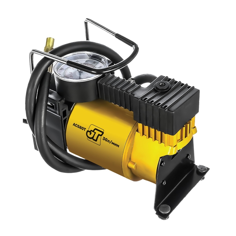 Автомобильный компрессор поршневого типа предназначен для подкачки шин автомобилей, мото, велотехники, а также спортивного инвентаря.