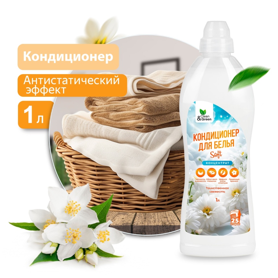 Кондиционер для белья Soft "Таинственная свежесть" (концентрат, белый) 1 л. Clean&Green CG8360