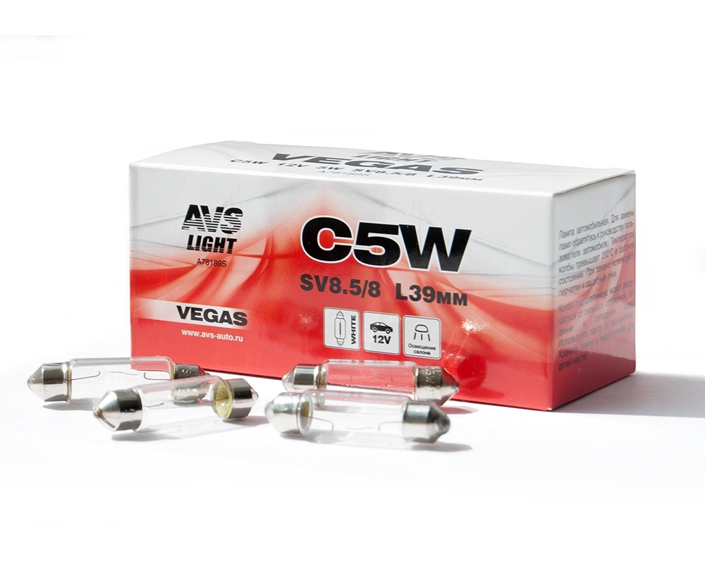 Лампа AVS Vegas 12V.С5W(SV8.5/8)L39мм. BOX 10шт.
