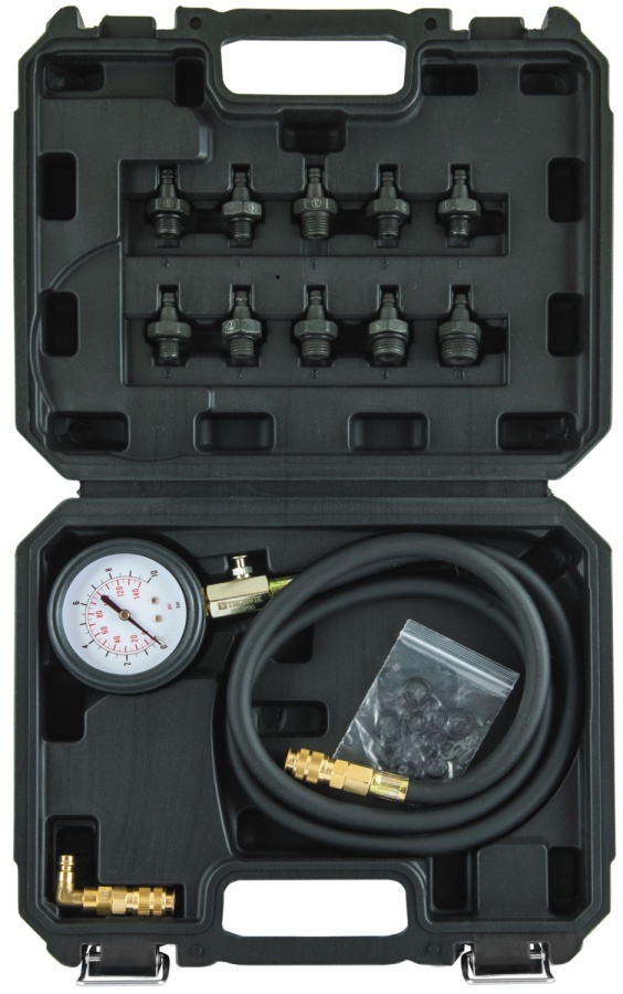 Тестер давления масла предназначен для точной диагностики давления масла в двигателе. Благодаря обширному набору адаптеров он имеет большую область применения и может использоваться для диагностики двигателей внутреннего сгорания многих моделей легковых автомобилей.