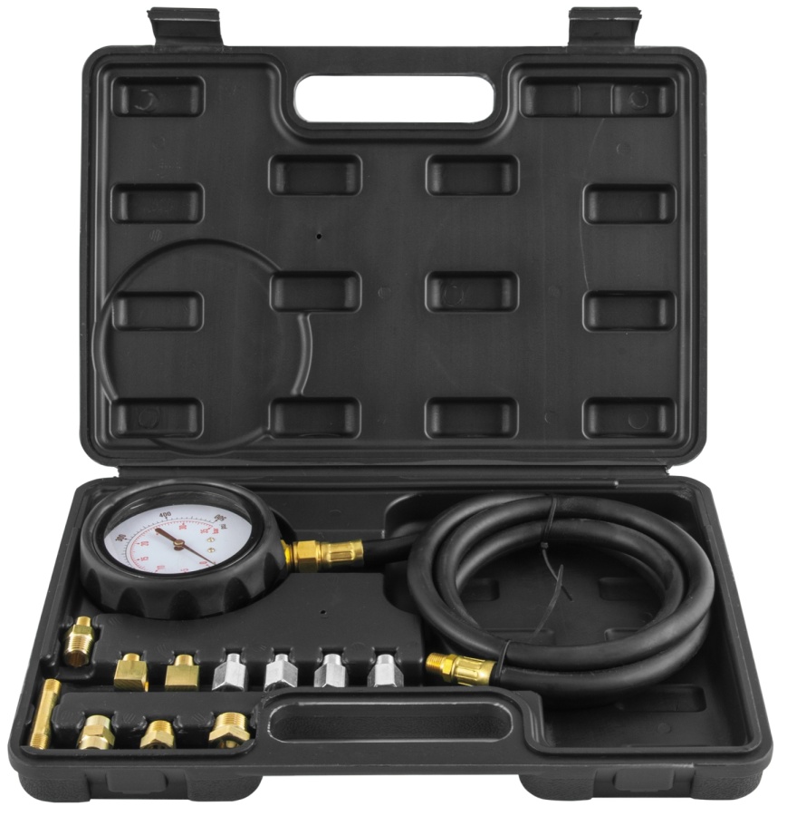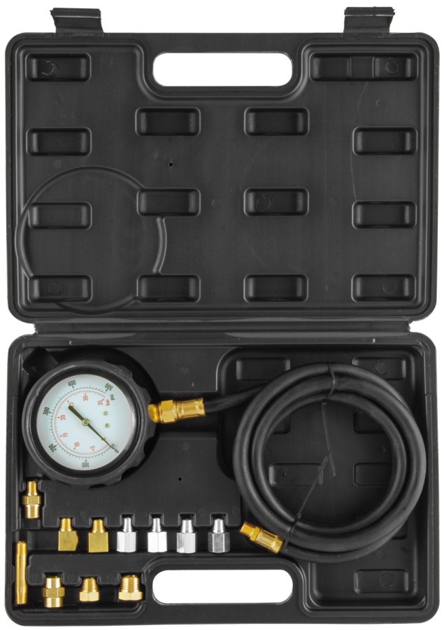 Набор для измерения давления масла в двигателе и автоматической трансмиссии применяется для измерения давления масла как в бензиновых, так и в дизельных двигателях, а также в автоматических трансмиссиях различных автомобилей.