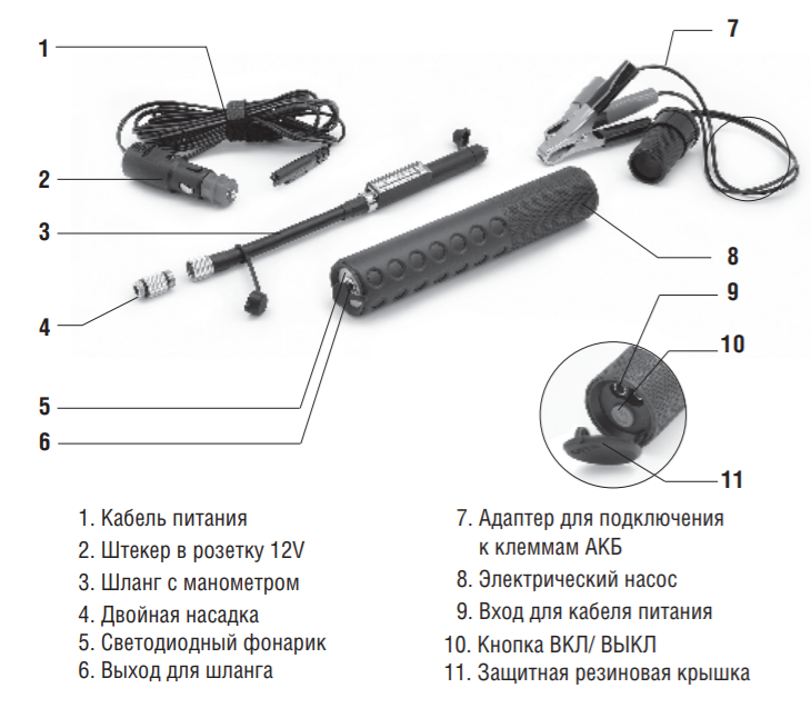 <p>- Шланг-удлинитель с манометром и наконечником-адаптером – 250 мм.</p>