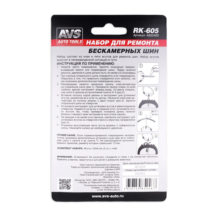 Набор для ремонта шин AVS RK-605 (клей, 5 жгутов)