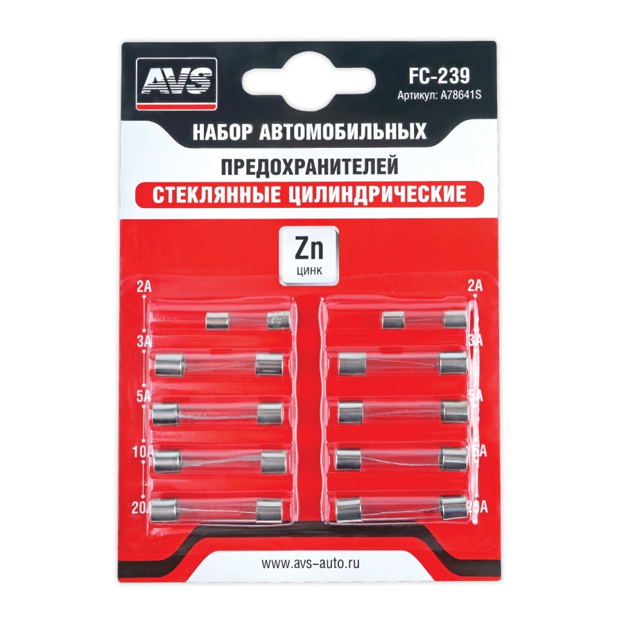 Набор предохранителей AVS FC-239 (цилиндрические стеклянные) в блистере