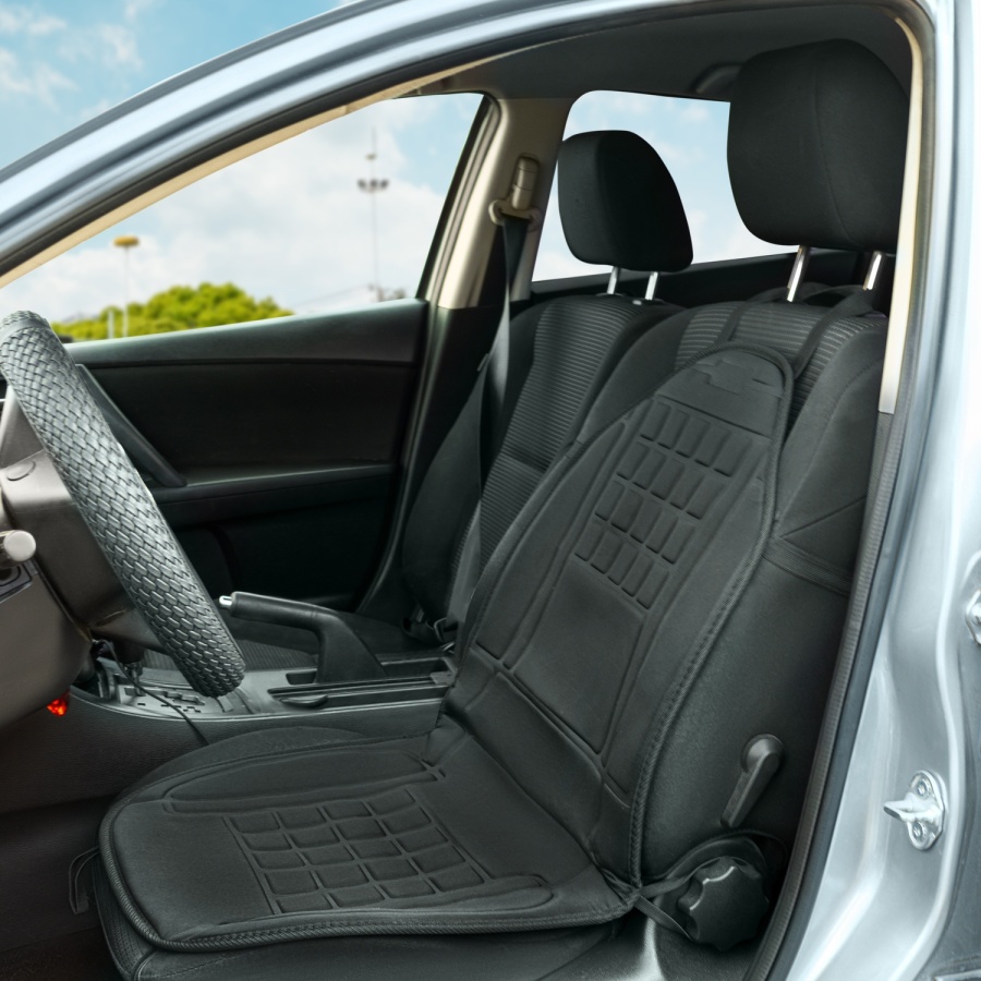 Накидка на сиденье сочетает в себе комфортный подогрев и удобство в эксплуатации в холодное время года. Безопасный термостат, а также универсальное крепление накидки эластичными ремнями. Простое и быстрое подсоединение к прикуривателю. Электропитание осуществляется от сети автомобиля 12В. Автоматическое поддержание оптимальной температуры. Низкое энергопотребление при высокой мощности.