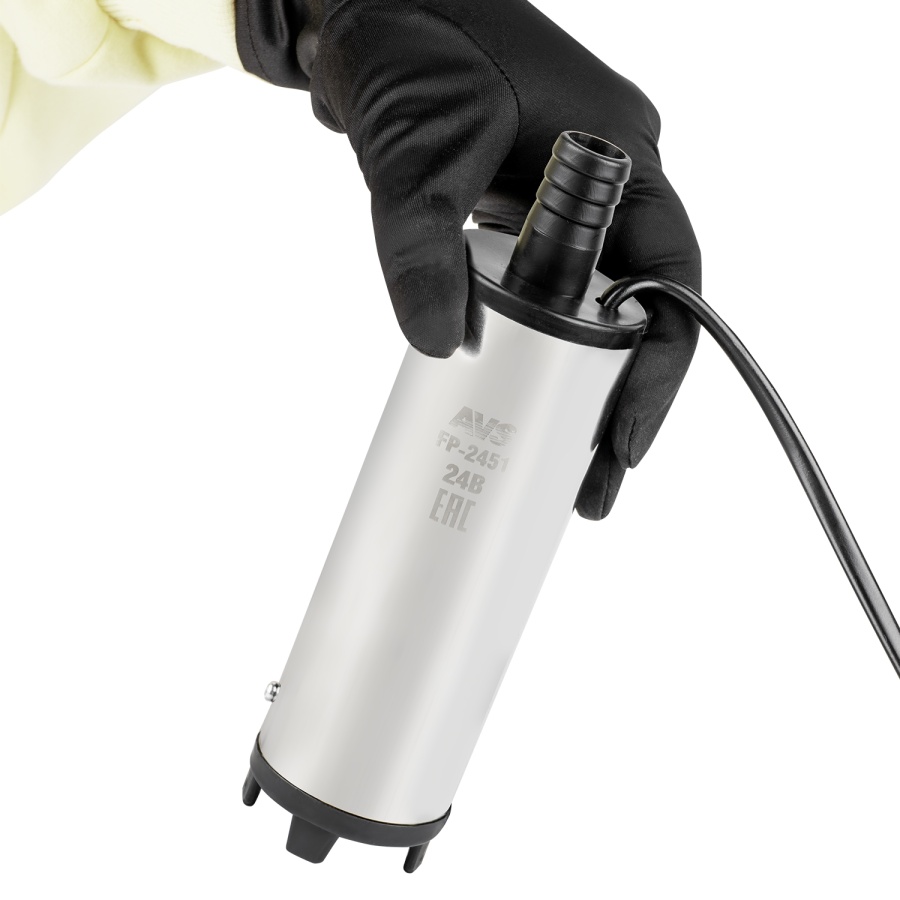 Насос погружной AVS FP-2451 24В диаметром 51мм предназначен для перекачки дизельного топлива из бочки, цистерны или любой другой емкости с узким горлышком. Оснащен несъемным фильтром грубой очистки из нержавеющей стали. Это обеспечивает максимальную длительность эксплуатации. Погружной насос комплектуется выключателем, расположенным на проводе, зажимами типа «крокодил» для подключения к АКБ и металлическим хомутом для обжима шланга. Эксплуатация допускается в широком температурном диапазоне окружающей среды от 5 до 40 градусов. Чтобы начать работу, достаточно присоединить топливный шланг и аккумулятор. Насос имеет четыре опоры, благодаря которым он устойчиво стоит вертикально на дне емкости и не присасывается ко дну.