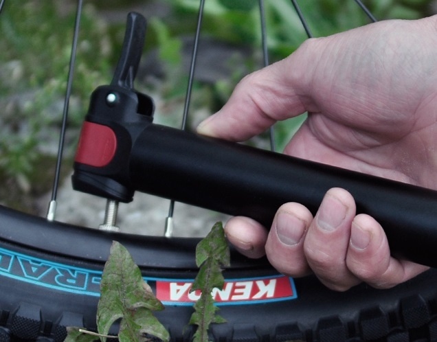 <p>Сцепление с ниппелем колеса происходит с помощью быстронакидкого наконечника с двумя выходами Schrader и Presta с одной стороны и фиксирующим рычажком с другой.</p>