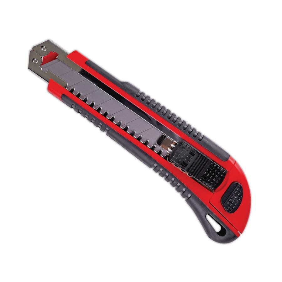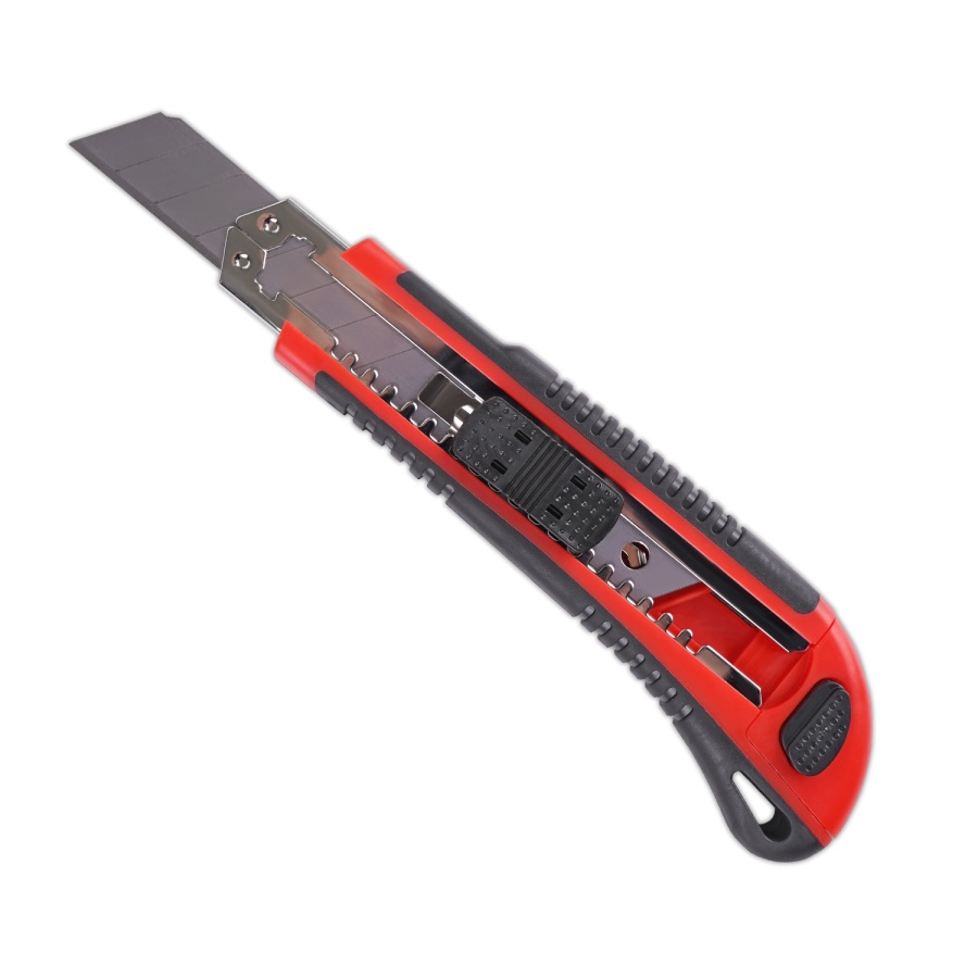 Применяется для разрезания бумаги, картона, линолеума, ковровых покрытий, гипсокартона, пластика, дерева и других материалов. Имеет двухкомпонентный эргономичный корпус, выдвижной отсек для запасных лезвий и систему автозамены лезвия.