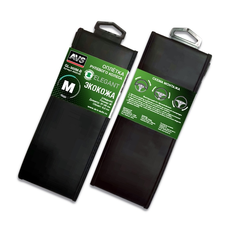 Оплетка на руль (эко-кожа) AVS GL-303M-B (размер M, черный) гладкая - Серия "Elegant"