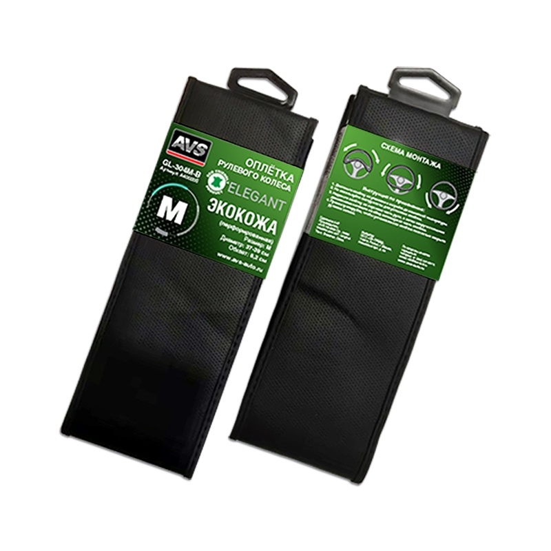 Оплетка на руль (эко-кожа) AVS GL-304M-B (размер M, черный) перфорированная - Серия "Elegant"
