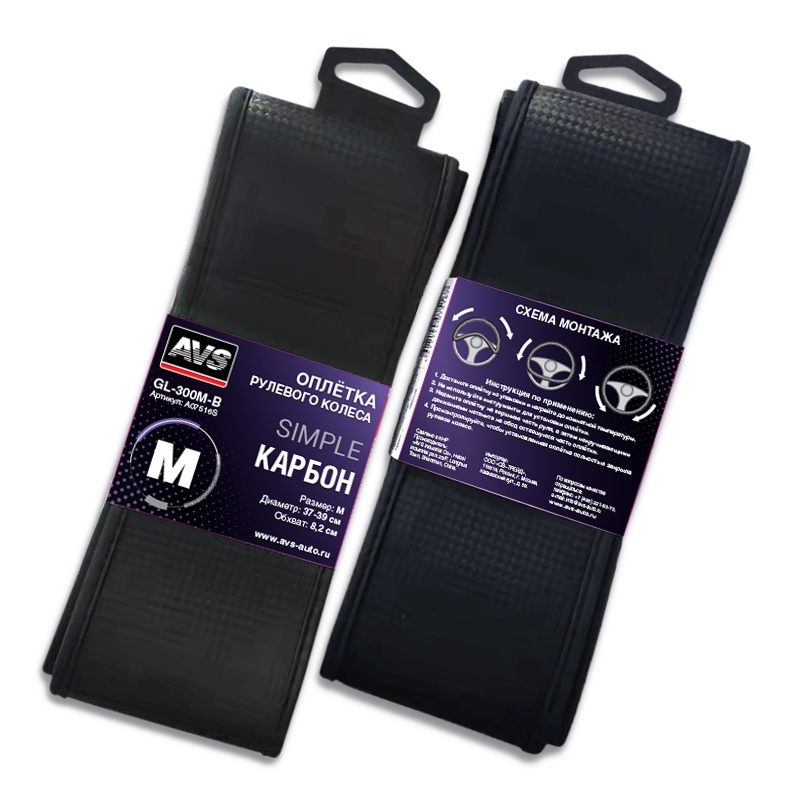 Оплетка на руль (карбон) AVS GL-300M-B (размер M, черный)