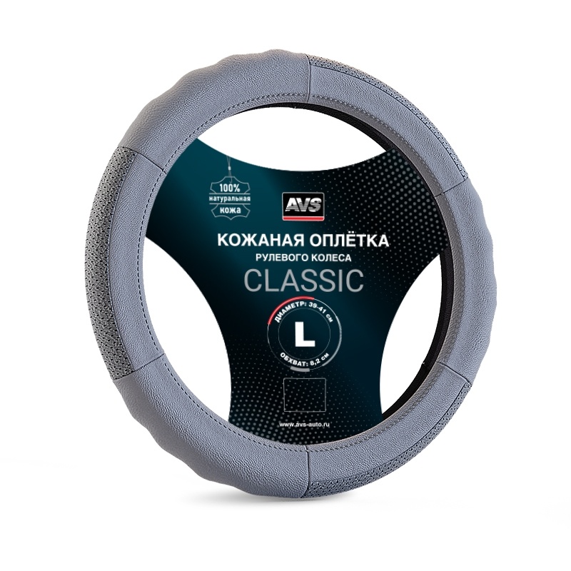 Оплетка на руль (нат. кожа) AVS GL-200L-GR (размер L, серый) - Серия "Classic"
