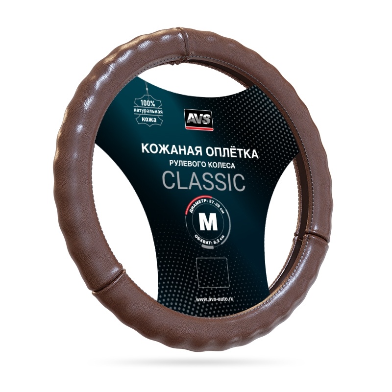 Оплетка на руль (нат. кожа) AVS GL-665M-BR (размер M, коричневый) - Серия "Classic"