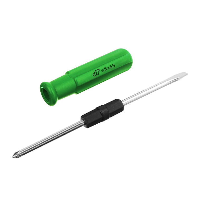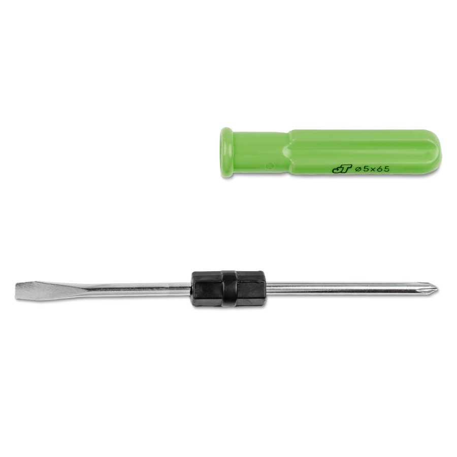 Отвертка предназначена для монтажа и демонтажа резьбовых соединений. Двухсторонний стержень отвертки имеет профили шлиц и крест.