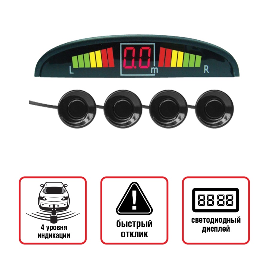 Парктроник PS-124U (4 датчика+коннекторы, цветной светодиодный дисплей с цифровым табло)