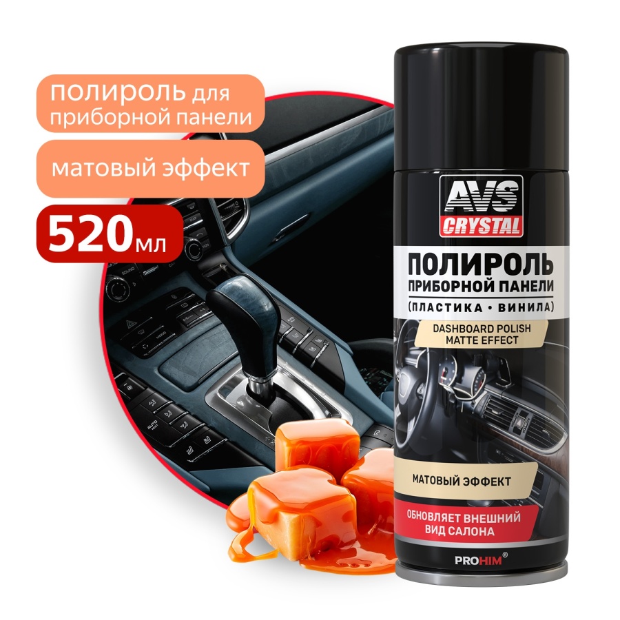 Полироль для приборной панели "Карамель" (аэрозоль) матовый 520 мл. AVS AVK-847