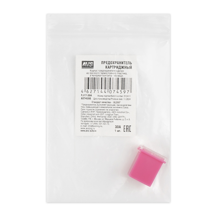 Предохранитель картриджный AVS FJ17-30A в пакете