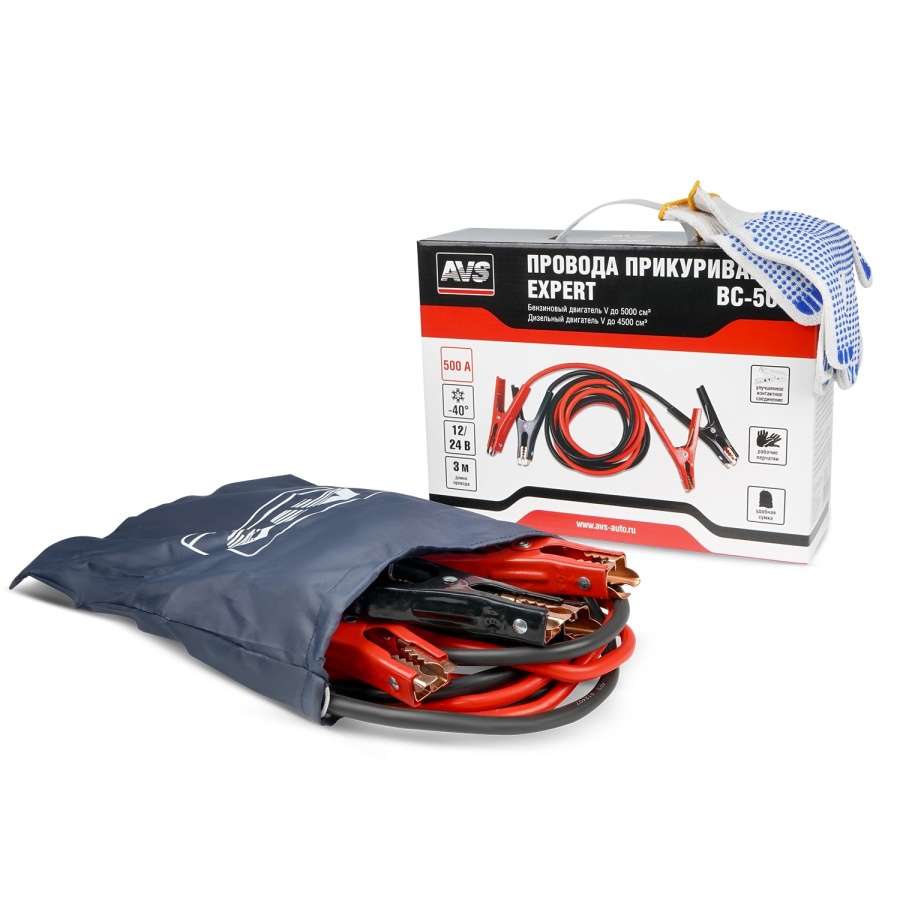 Провода прикуривания AVS "BC-500" предназначены для пуска двигателя автомобиля с разряженной аккумуляторной батареей от аккумулятора другого автомобиля.