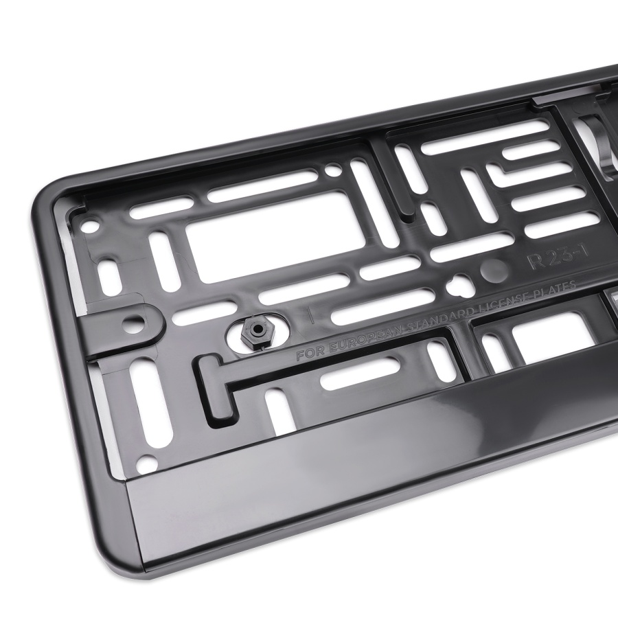 Рамка под номер, изготовлена из прочного эластичного пластика, предназначена для удобной установки номерных знаков на автомобиль. Конструкция открытия рамки – "нижняя защелка". Данная конструкция обладает надежным креплением номерного знака.