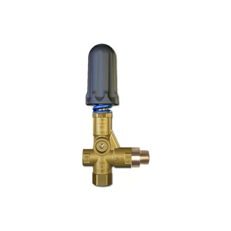 Регулирует давление посредством поворота ручки, винта и автоматически перепускает жидкость из нагнетательной магистрали насоса во всасывающую при превышение установленного давления, например при закрытии магистрали высокого давления пистолетом или краном.