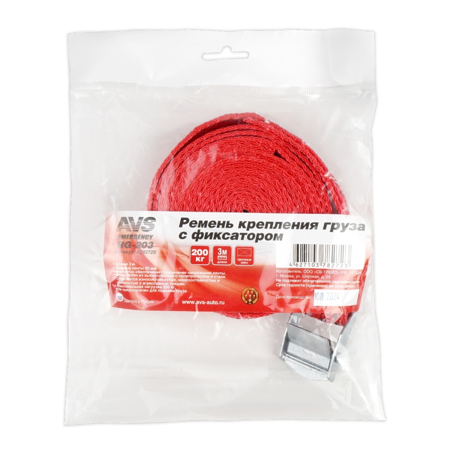 Ремень крепления груза с фиксатором 3 м, 200 кг, 25 мм AVS RG-203