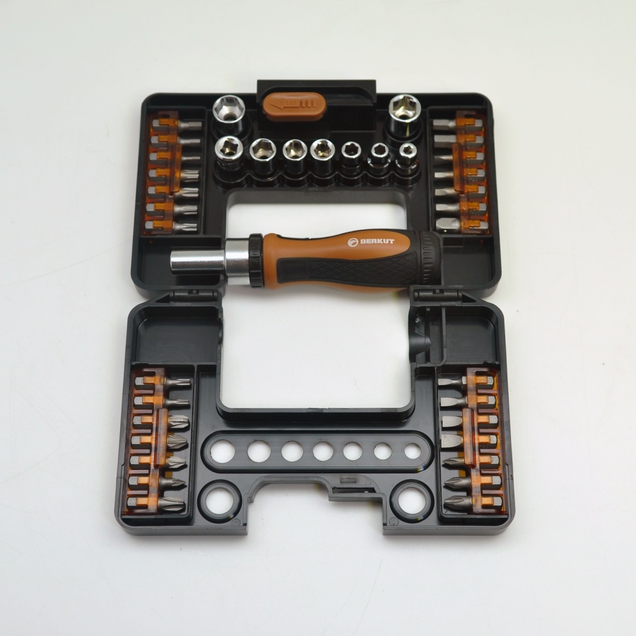 Реверсивная, трещоточная отвёртка со сменными битами и головками BERKUT BS-SET9138 (38 предметов)