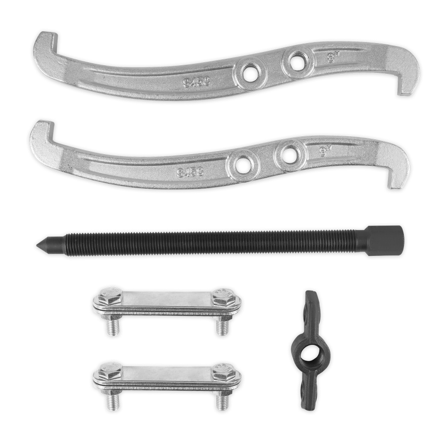 Применяется для демонтажа подшипников, шкивов, шестерней и других деталей, имеющих посадку с натягом. Шарнирная конструкция съемника надежно удерживает демонтируемую деталь. Дополнительные крепежные отверстия позволяют изменять конфигурацию съемника. Двусторонние переставные лапы дают возможность как внешнего, так и внутреннего захвата деталей.