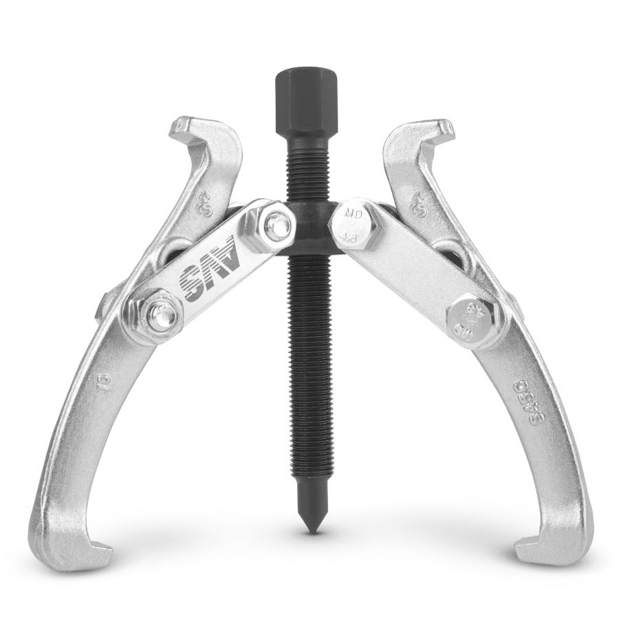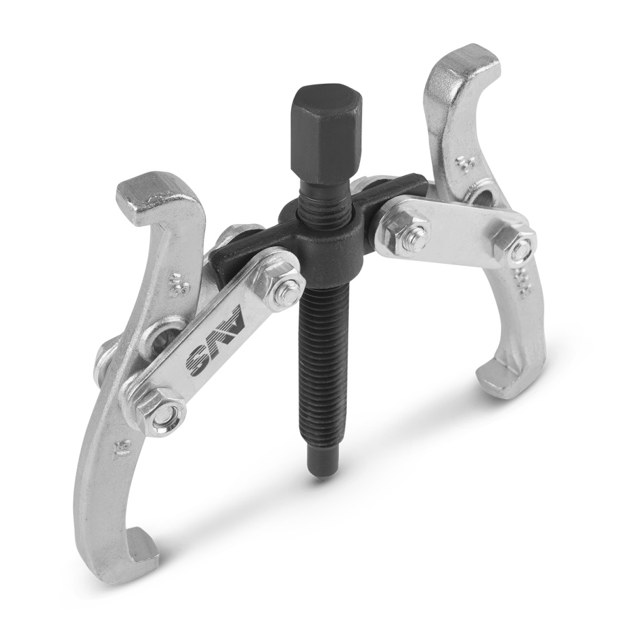 Применяется для демонтажа подшипников, шкивов, шестерней и других деталей, имеющих посадку с натягом. Шарнирная конструкция съемника надежно удерживает демонтируемую деталь. Дополнительные крепежные отверстия позволяют изменять конфигурацию съемника. Двусторонние переставные лапы дают возможность как внешнего, так и внутреннего захвата деталей.