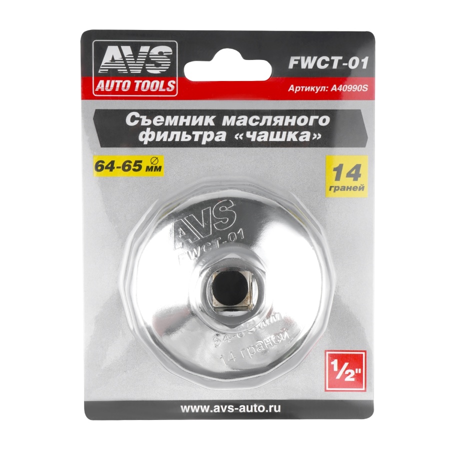 Съемник масляного фильтра «чашка» 64-65 мм, 14 граней AVS FWCT-01