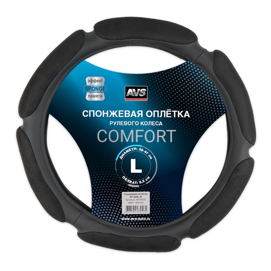 Спонжевая оплетка руля AVS SP-426L-B ( размер L, черный) - Серия "Sponge"