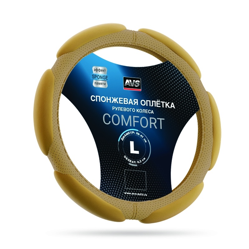 Спонжевая оплетка руля AVS SP-426L-BE ( размер L, бежевый) - Серия "Sponge"
