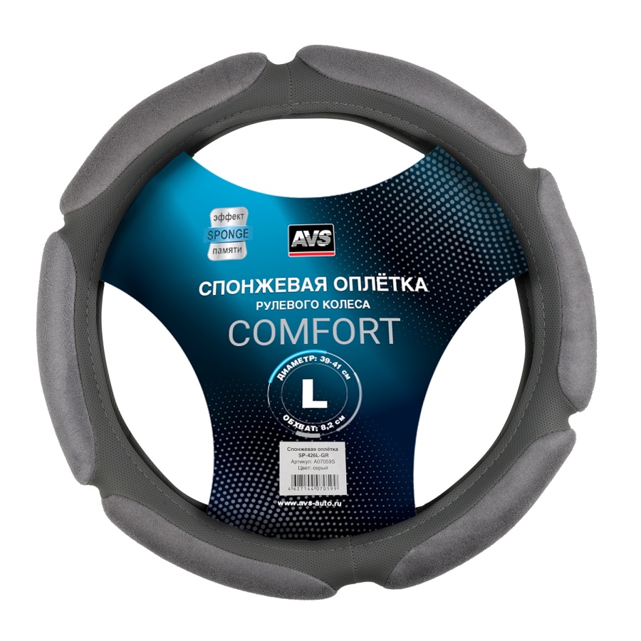 Спонжевая оплетка руля AVS SP-426L-GR ( размер L, серый) - Серия "Sponge"