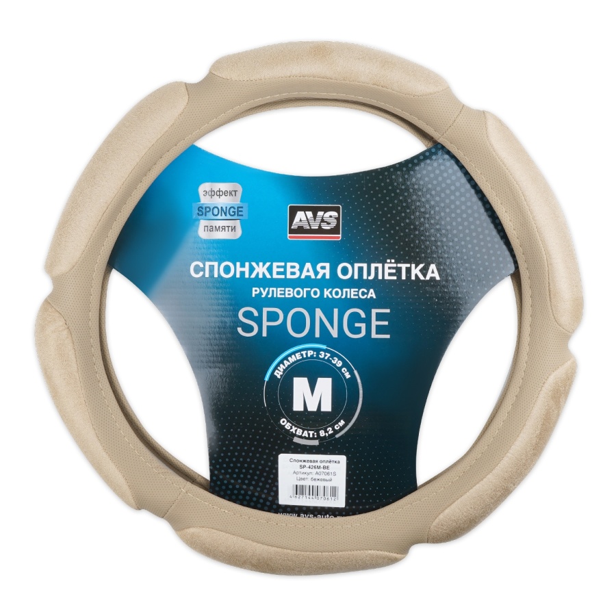 Спонжевая оплетка руля AVS SP-426M-BE ( размер M, бежевый) - Серия "Sponge"
