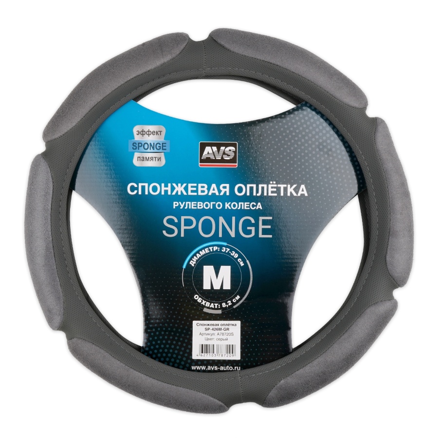 Спонжевая оплетка руля AVS SP-426M-GR ( размер M, серый) - Серия "Sponge"