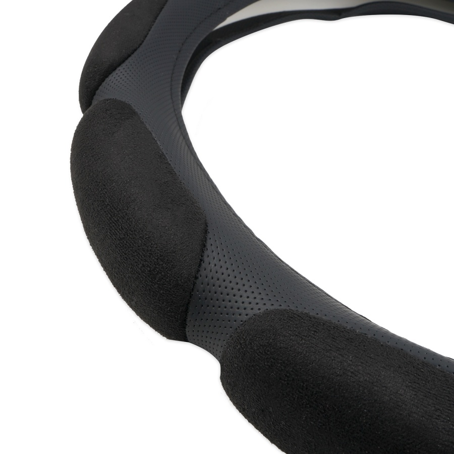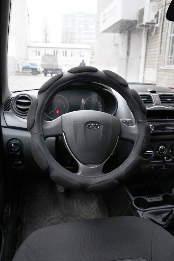 Объемные вставки «подушки» (10 шт.) наполнены специальным спонжевым поролоном с ««эффектом памяти»», благодаря которому он принимает форму рук и не оказывает обратного давления на пальцы и ладони, снижает усталость от хвата за рулевое колесо. Поролон обтянут материалом «алькантара», что способствует надёжному контакту ладоней с ободом руля. Основа оплетки прорезинена – это исключает проскальзывания по рулю. Стильная и удобная оплётка на руль является отличным дополнением любого автомобильного интерьера.