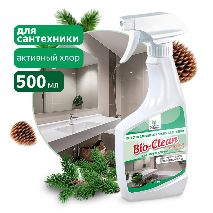 Средство для мытья и чистки сантехники "Bio-Clean" (триггер) 500 мл. Clean&Green CG8122