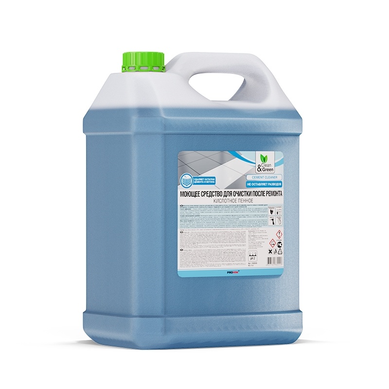 Кислотное пенное моющее средство для удаления остатков цемента, бетона, строительных смесей, ржавчины, извести, солевых отложений и других материалов, оставшихся после строительства и ремонта. Применяется для очищения полов и других поверхностей.