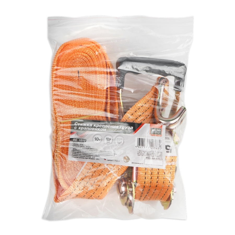 Стяжка крепления груза 10 м, 10 т, 55 мм с храповиком AVS SG-1010