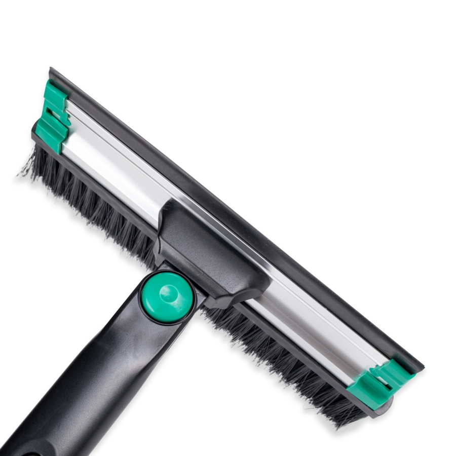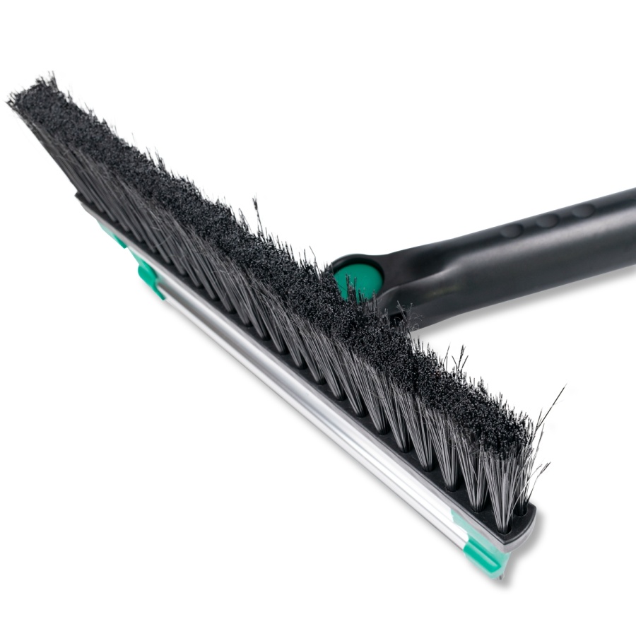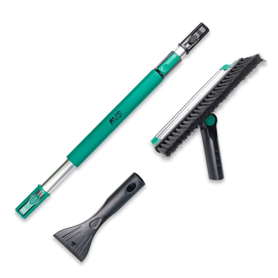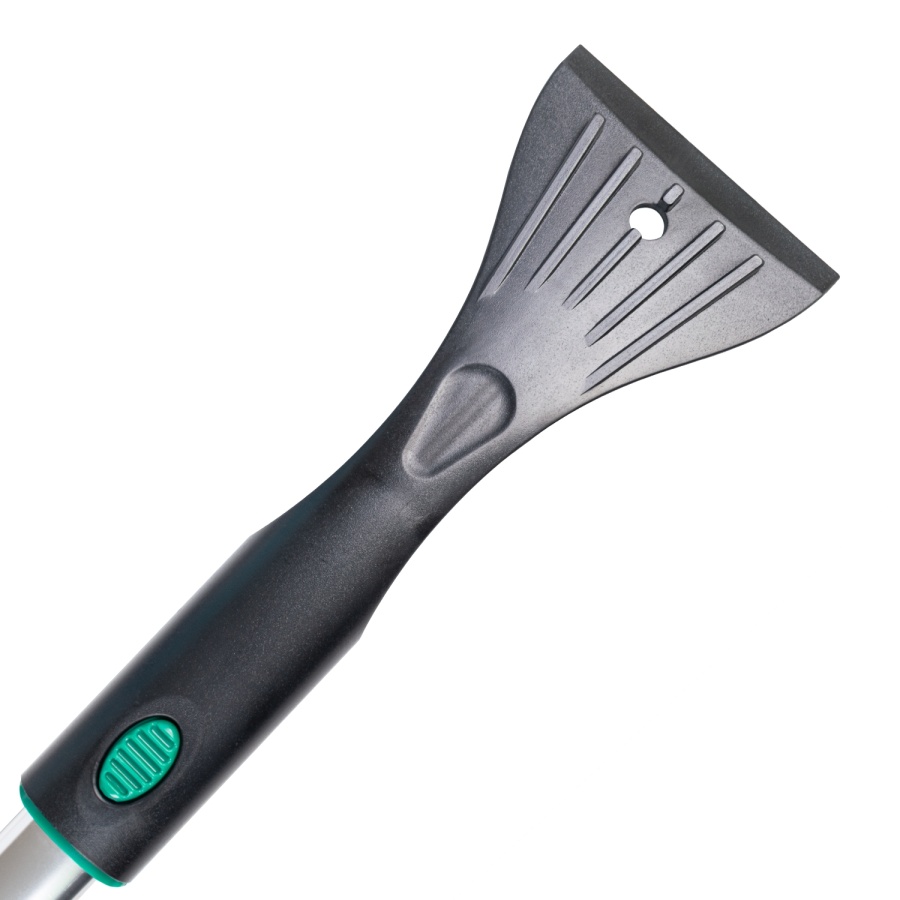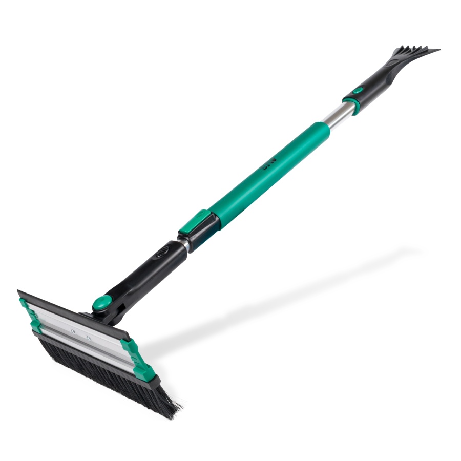 Телескопическая щетка для полноценной очистки автомобиля от осадков. Имеет упругую распушенную щетину с поворотным механизмом на 90° для очистки снега, скребок с зубьями для удаления льда и водосгон для удаления капель воды с со стекла. Удобная мягкая ручка из материала Спонж для комфортного использования. Голова и скребок снимаются для удобства очистки труднодоступных мест.