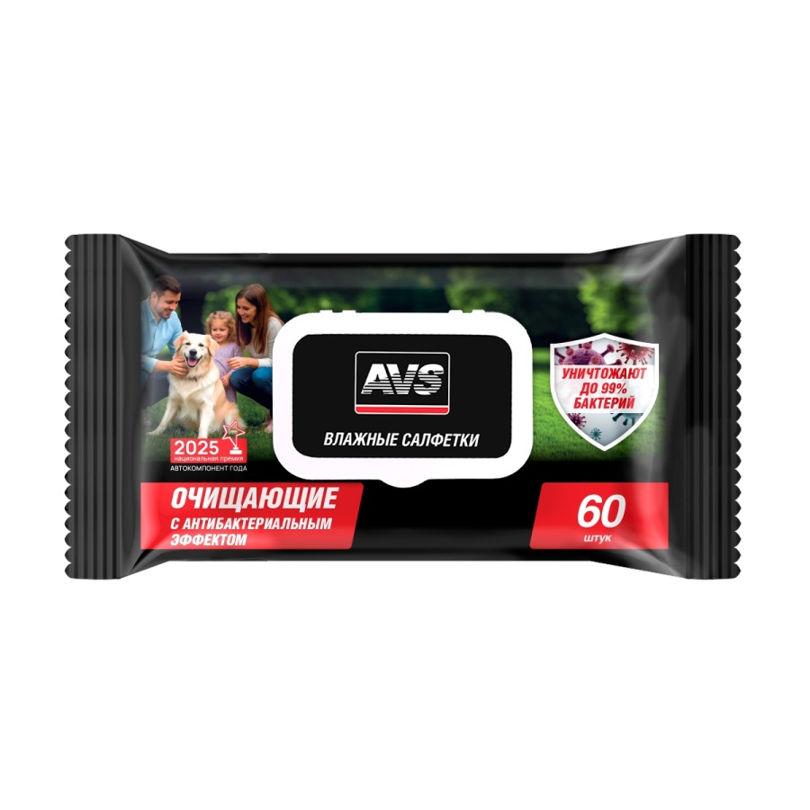 Влажные салфетки "Очищающие с антибактериальным эффектом" (пластиковый клапан) 60шт AVS AVK-213